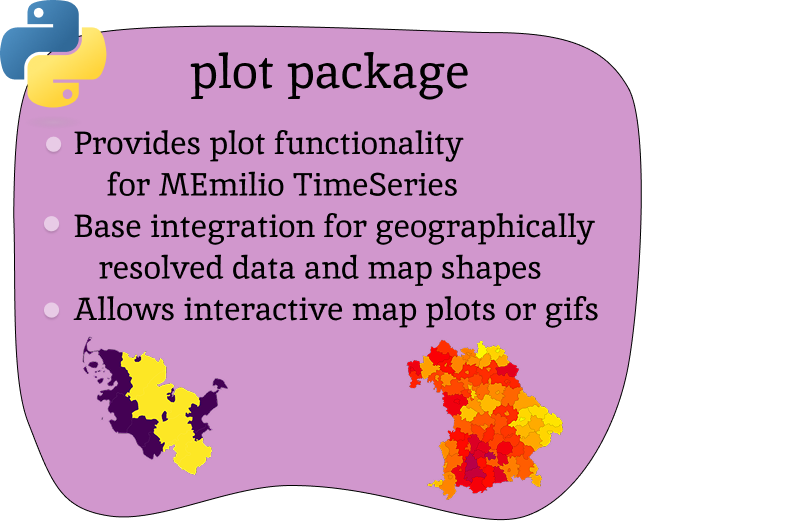MEmilio contains several python modules offering an easy-to-use interface to the efficiently implemented C++ models and to complement these by data preparation, code generation, machine learning, or plotting functionality. Please see the individual package documentation for more details on the functionality and usage.